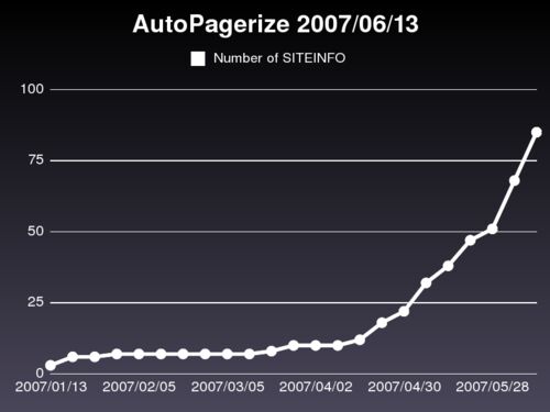 open-uriとHpricotでデータを取ってきておいて、 それを適当に日付で整理、あとはGruffで出力 けっこうすごいペースで増えてるなあ